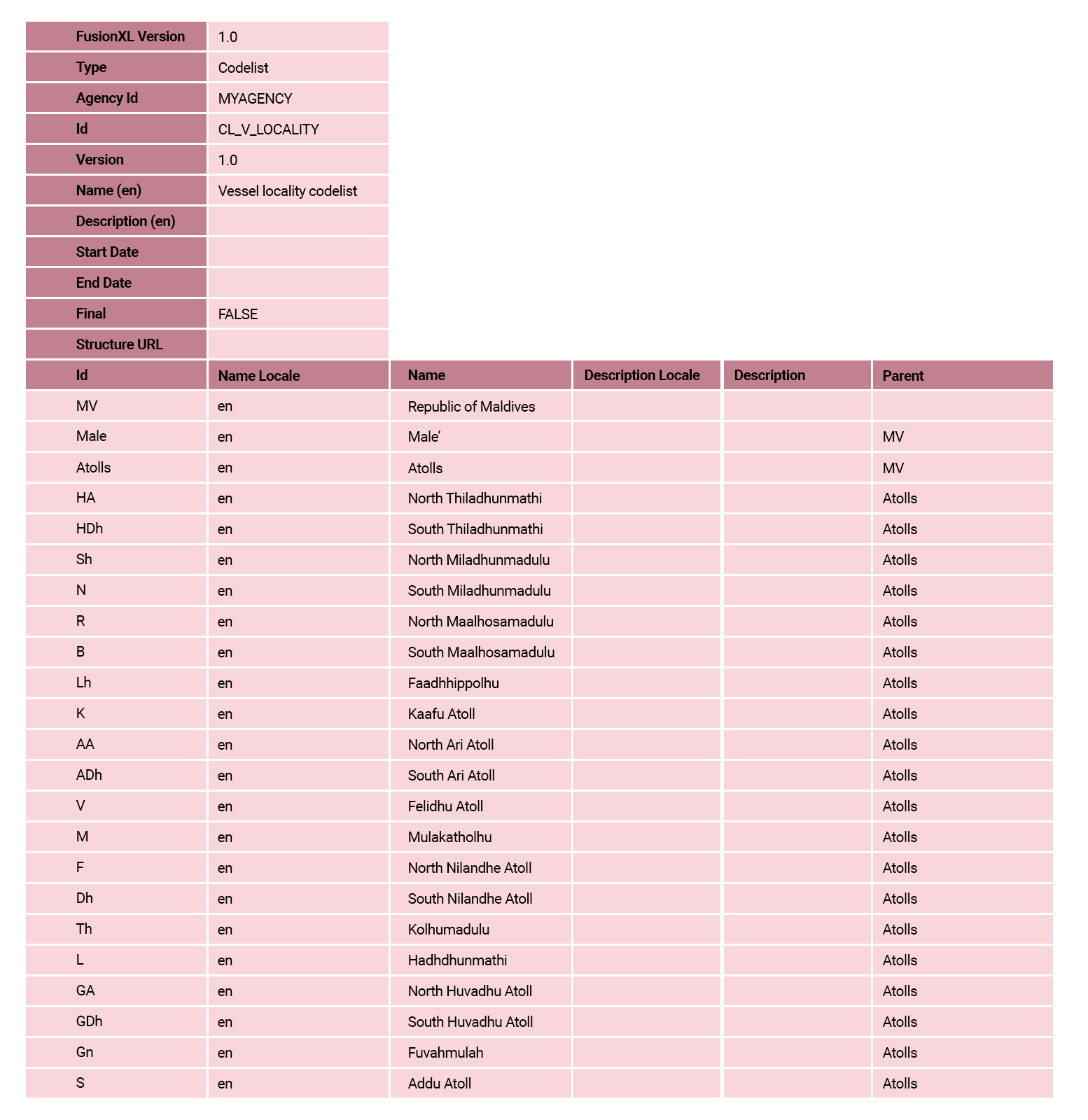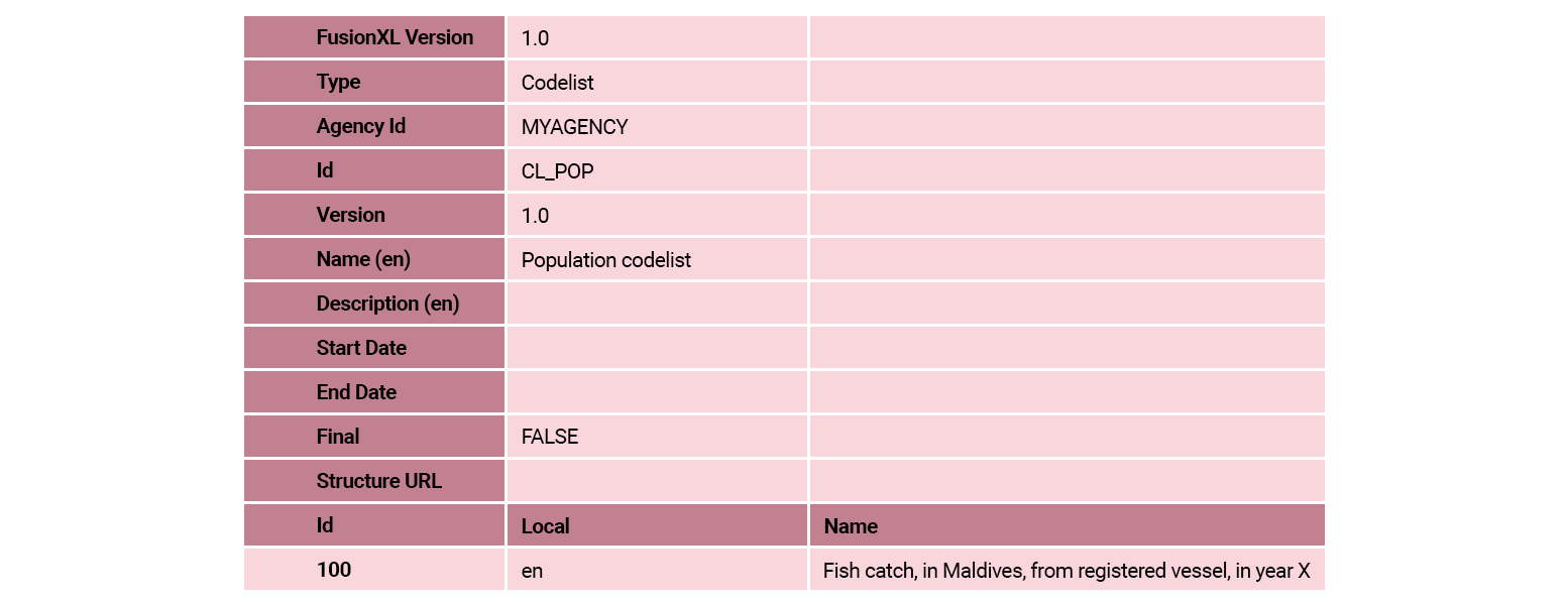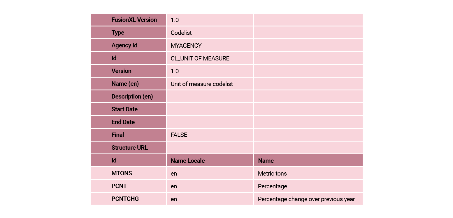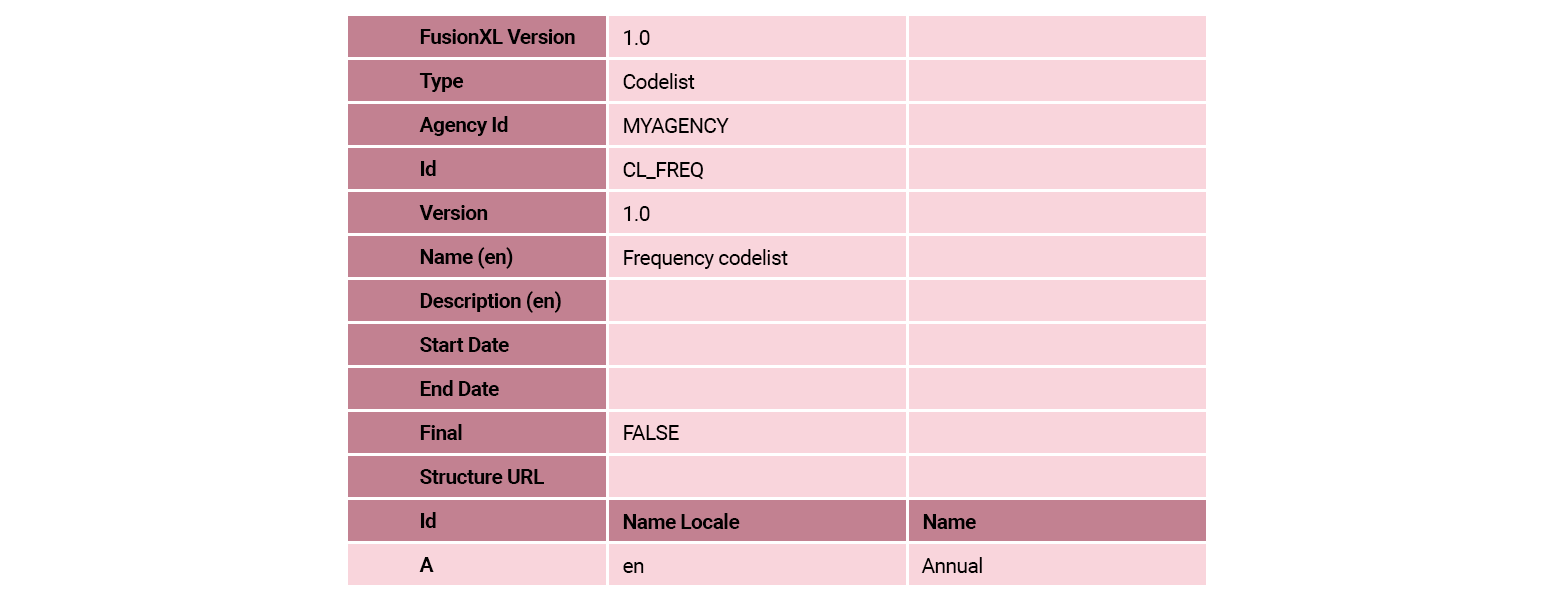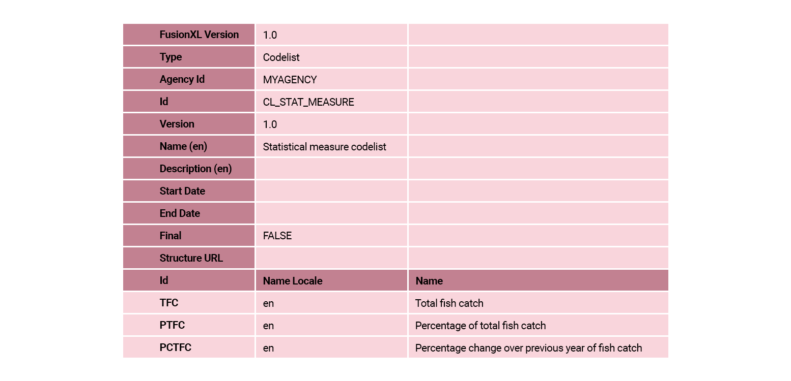 When this task is completed, in the FMR Codelists main window, select the row for this codelist and then select Export Excel. The codelist should look the same as the following table: