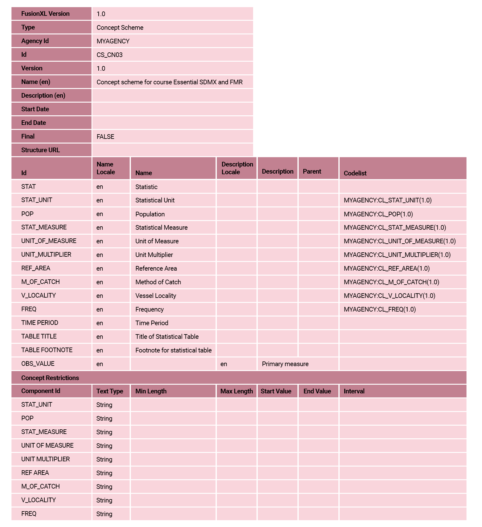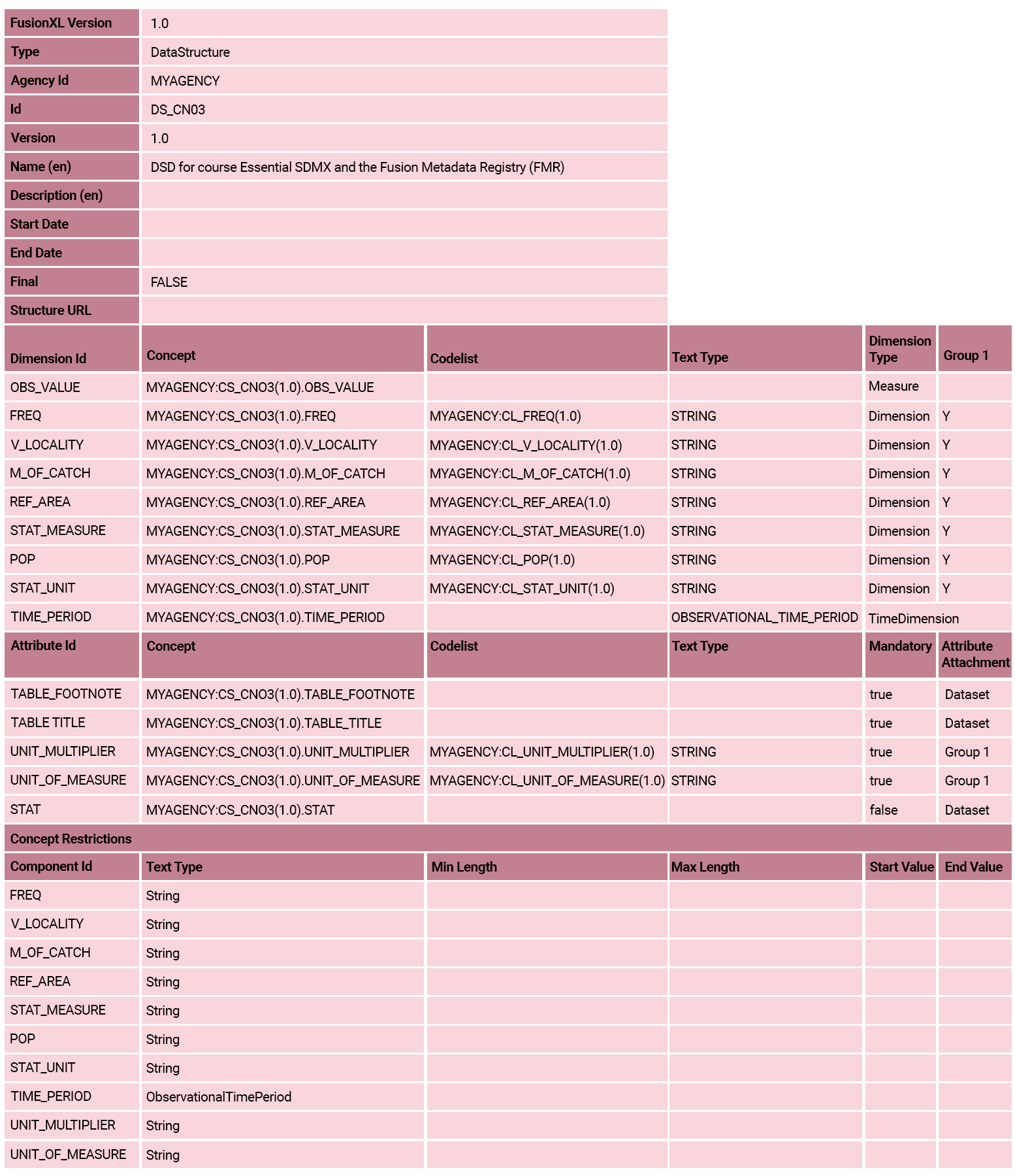 At the end of this unit, all SDMX concepts and artefacts in the structural model will be recorded in FMR and available for use to support statistics use cases.