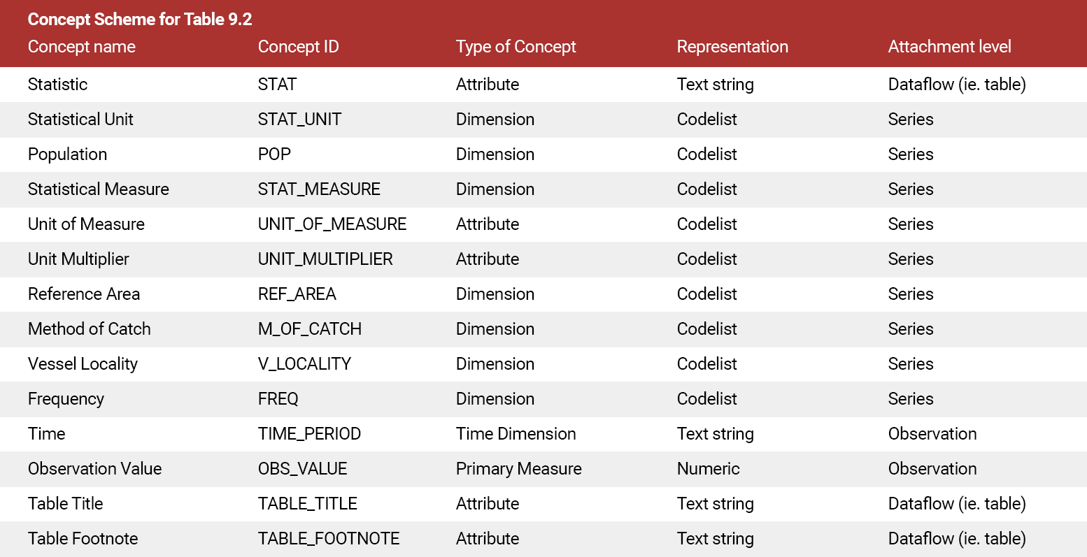 These concepts now need to be represented according to SDMX maintainable structure types in a manner consistent with using them as a part of a statistical system. To achieve this objective, we need to introduce a number of additional SDMX structures.