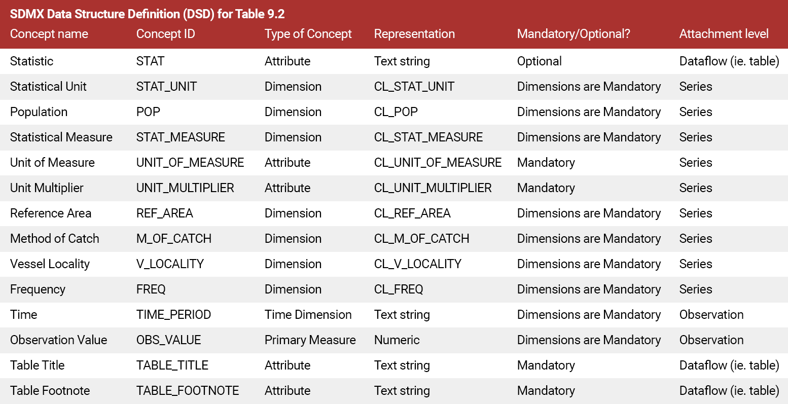 The SDMX DSD for our Fish Catch By Vessel Locality is shown in the following table.
