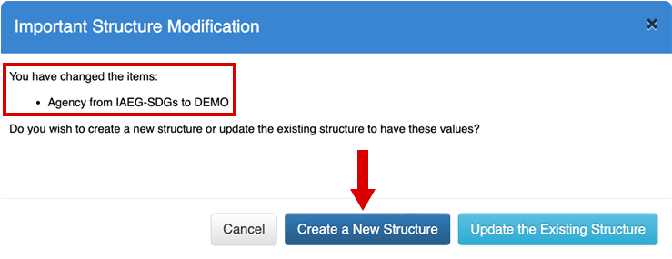 Step 6: Review the pop-up message, confirm that the agency change is correct and then select the Create a New Structure button.