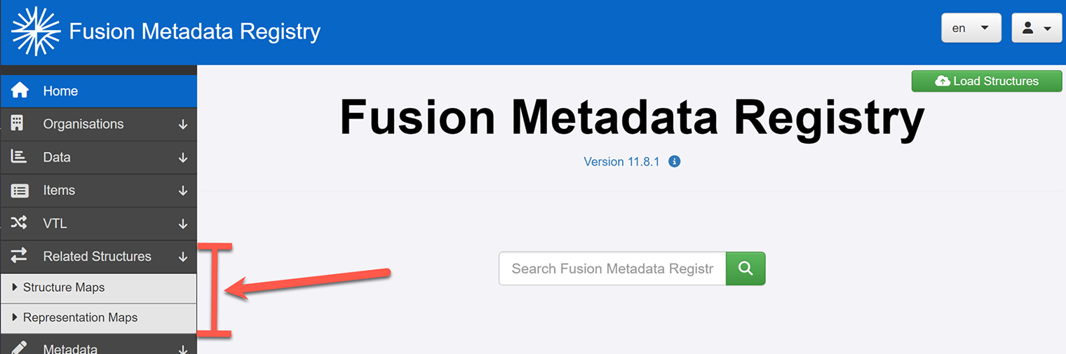 Using FMR, the creation and maintenance of structure maps and representation maps are accessible from the main menu as shown below.