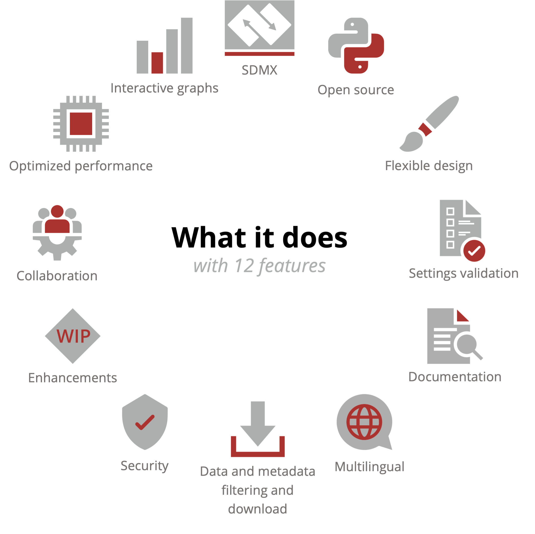 The SDMX Dashboard Generator is an open-source application that generates dynamic dashboards by offering several key features: